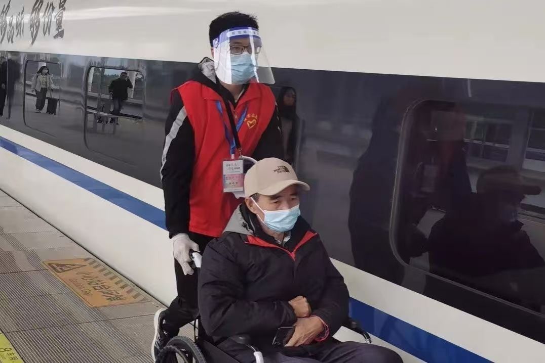 服务期间,突发状况不时发生,“志愿到点不下班是常态”。某天傍晚,志愿者们准备下班时,遇到了一位阿姨前来寻求帮助——列车即将开动,但她突感身体不适。身为队长的林长智先让其他志愿者帮助阿姨拿行李,并搀扶她就近落座休息,他自己则快速前往服务站取来备用轮椅,“想要推着阿姨前往上车点”。但还是晚了一步,阿姨没能赶上列车。林长智主动留下来帮助阿姨改签车票,并委托工作人员协助她上车。“后来,阿姨还专门联系了车站,向车站向我们致谢,志愿者们得知消息后也备受鼓舞,干劲十足。”林长智说。