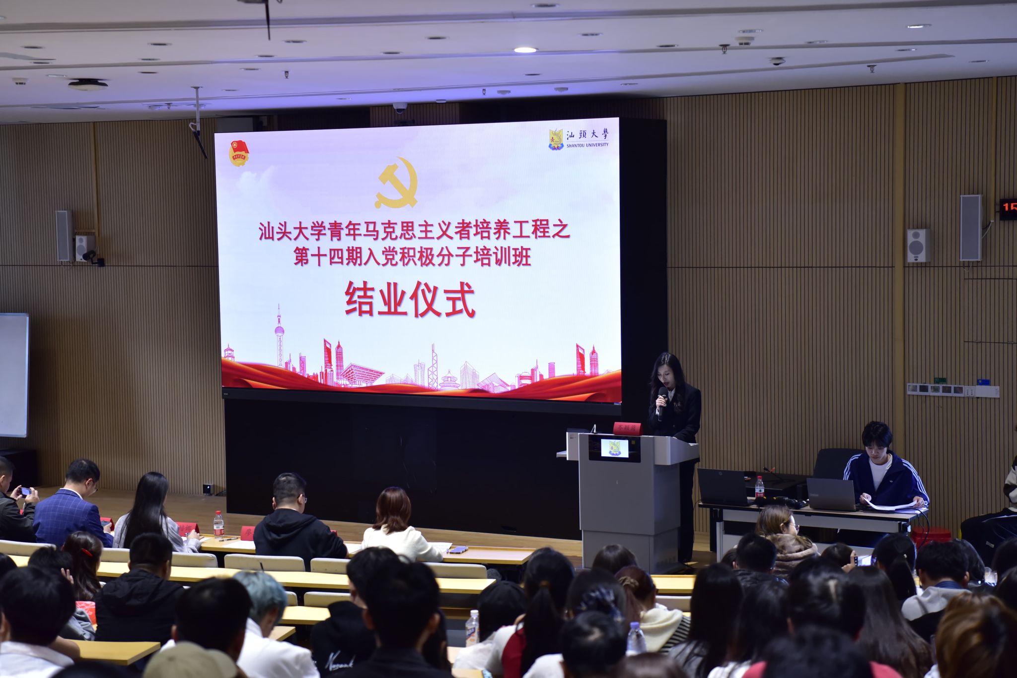 12月6日15时,汕头大学青年马克思主义者培养工程之第十四期入党积极分子培训班结业仪式在汕头大学东海岸校区E座105教室顺利开展,同时在桑浦山校区讲堂一设分会场。
