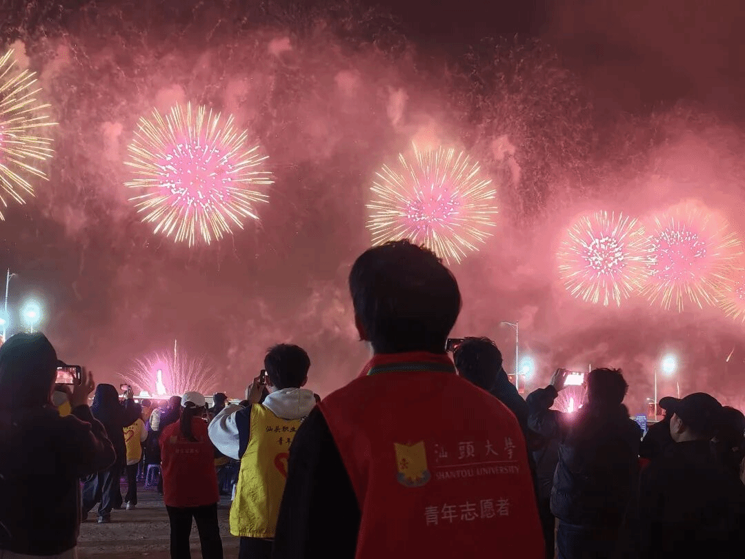 焰火的璀璨转瞬即逝,志愿的温暖却久久留存。万人仰望的是夜空中的流光溢彩,而汕大志愿者们仰望的,是市民脸上的开怀笑意,是一城烟火的平安祥和,更是志愿精神在青春里的闪耀模样。从午后艳阳到夜幕低垂,他们以坚守诠释责任,以微笑传递温暖,让 “奉献、友爱、互助、进步” 的志愿精神在鮀城新春的风里生根发芽。这抹属于汕大青年的志愿亮色,不仅为一场盛会筑牢了保障,更化作城市里流动的温暖,让青春的担当与奉献,成为比焰火更动人的风景,也让志愿的火种在一次次坚守中,持续传递、生生不息。