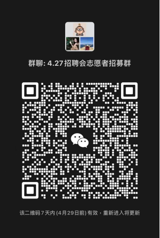 有意愿参加的同学于2025年4月23日12:00前登录以下链接进行报名:https://www.wjx.cn/vm/wT8UoPU.aspx ,并扫描下方二维码加入志愿者招募群,录取名单将通过邮件和微信群内通知,请留意。