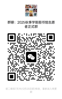 自12月11日《关于开展“青春志愿行 建功新时代”桑浦山校区图书馆学雷锋岗志愿服务活动的通知》发布以来,得到同学们的热烈响应和积极参与,现确定吴琬青等20名同学作为正式的志愿者(具体名单详见附件)。请被录取志愿者扫描二维码进群,若对名单有所疑问,请在咨询群与负责人联系。