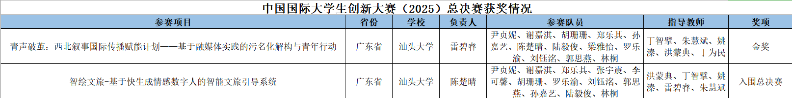 近日,教育部发布“中国国际大学生创新大赛(2025)总决赛”拟获奖项目名单,我校“青声破茧——西北叙事国际传播赋能计划——基于融媒体实践的污名化解构与青年行动”项目及“智绘文旅——基于快生成情感数字人的智能文旅引导系统”项目在全国报名参赛项目中脱颖而出,分别获得全国铜奖及入围奖。
